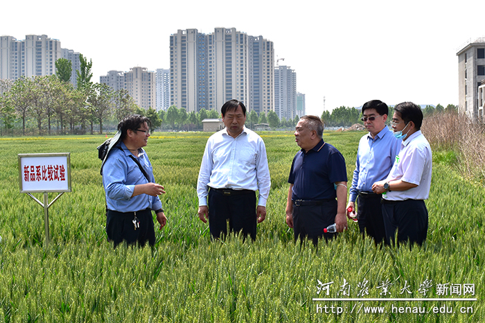 本网讯(通讯员 唐建卫)4月23日上午,省农业农村厅副厅长王俊忠到我校许昌校区小麦育种试验田调研小麦种业科技创新工作。校党委委员、学院党委书记郭战伟,许昌校区执行校长杨青华及专家代表陪同调研。