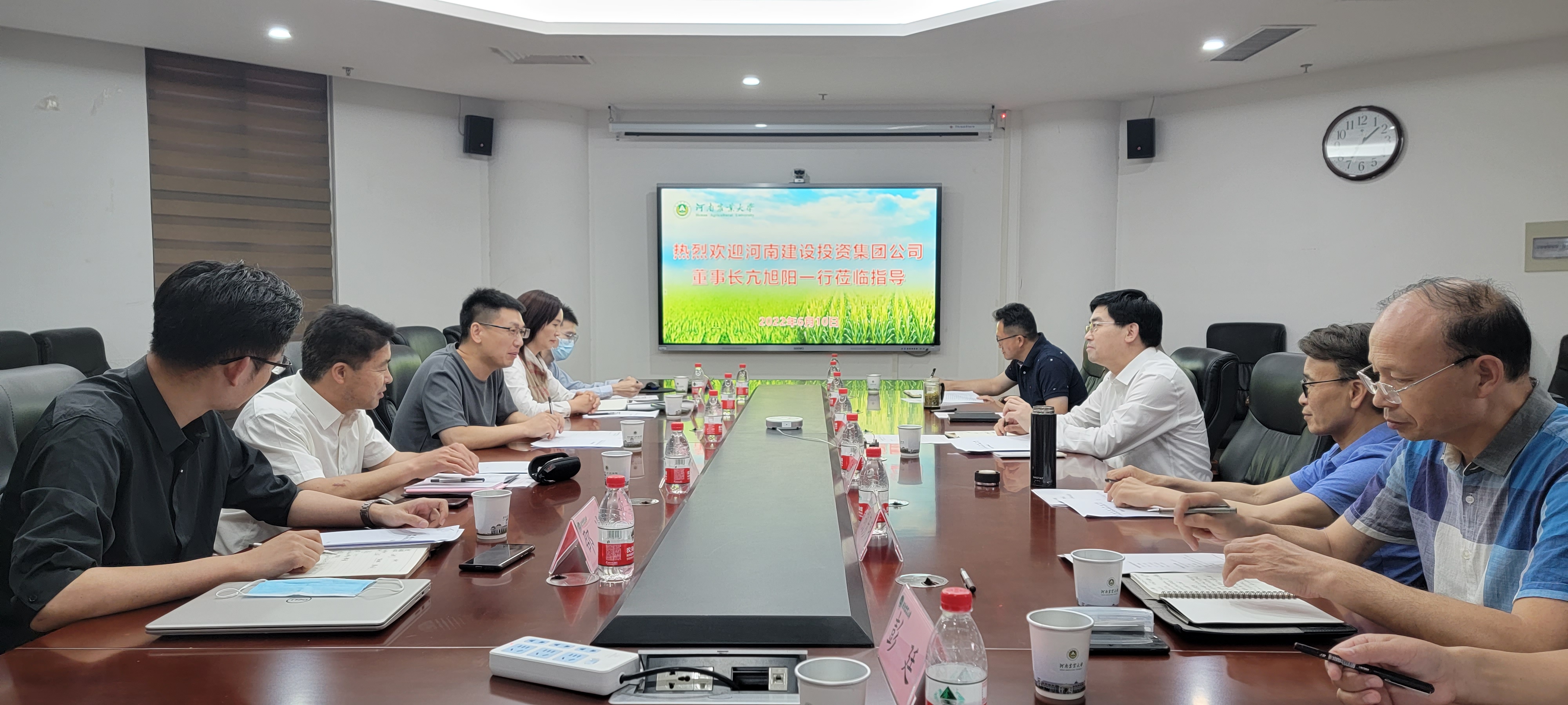 王道文对河南建设投资集团有限公司一行到访我校表示热烈欢迎。他简要回顾了我校办学历史,详细介绍了作物学学科发展历程及学院科研平台、人才培养和社会服务等方面情况及取得的成效。
