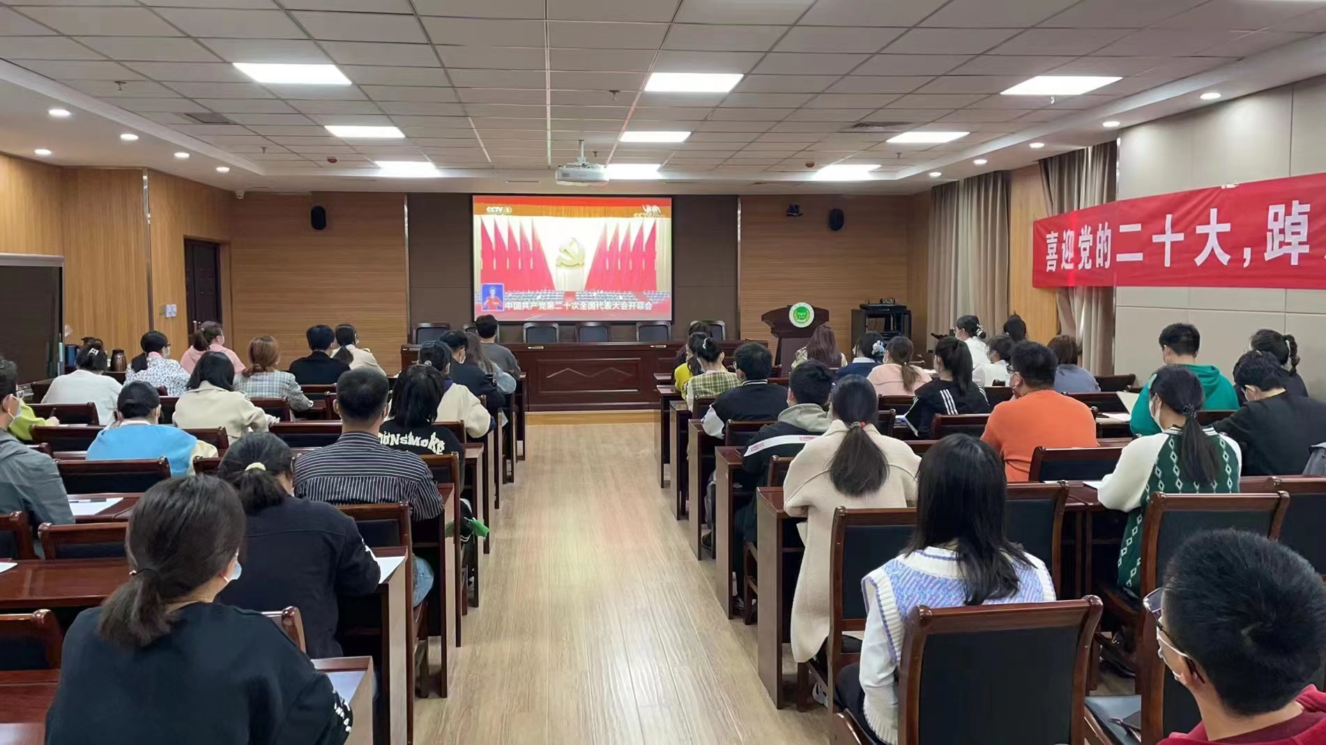 领导班子、教职工生、学生党员代表集中收看了中国共产党第二十次全国代表大会直播盛况,聆听总书记工作报告。各学生班以主题班会的方式观看了开幕会,大家充分利用会议室、办公室、实验室、宿舍网络、广播电视设施,学习会议精神,共同庆祝党的二十大胜利召开。