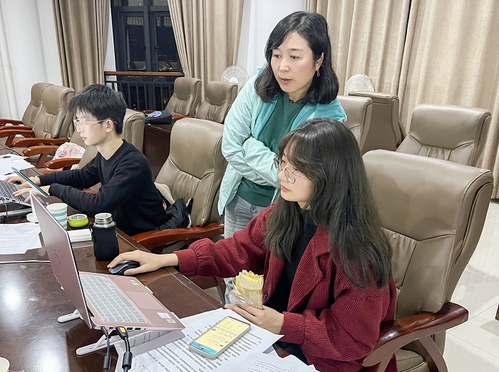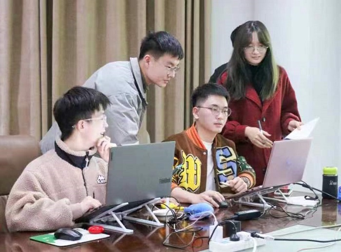 教师王泳超作为两支团队的指导老师,始终关注着团队备赛情况。据悉,邵瑞鑫为协助项目团队打磨比赛PPT连续四天住宿学校办公室,陪着两支团队反复观看历年比赛的路演视频,指导团队决赛答辩的预演和修正。团委老师唐朝也陪伴在学生身边,为两个团队一遍遍核对线上比赛设备、比赛服装等细节,鼓励参赛队伍放平心态,抚慰他们的紧张情绪。决赛即将到来,团队全体成员近一周每天早上八点半就已开始进行PPT的修改,晚上六点半到达实验室后,团队讨论常常持续到十一点甚至凌晨。