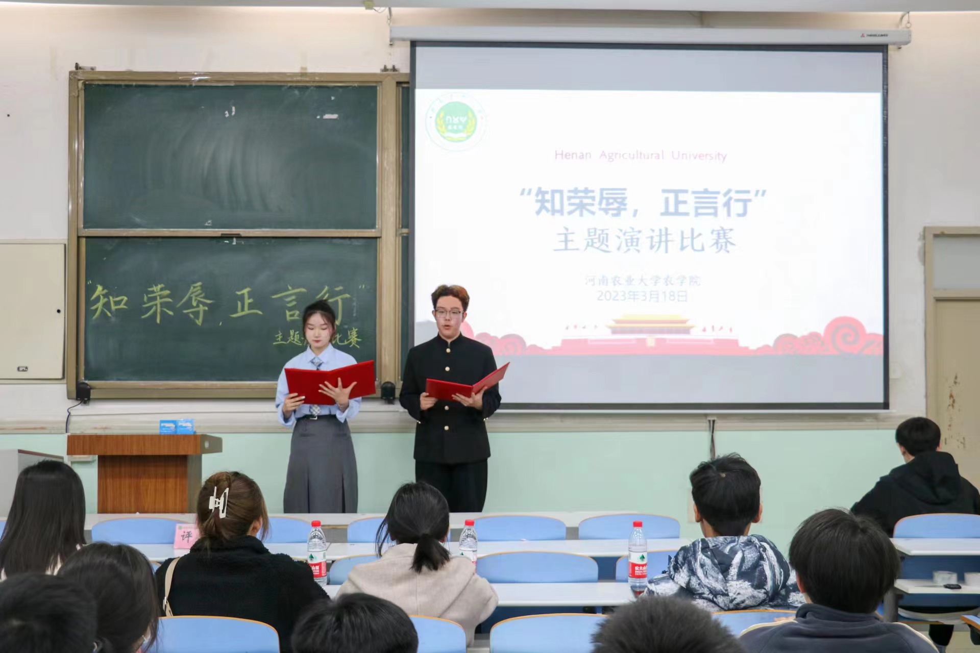 比赛现场,参赛选手围绕“知荣辱,正言行”的主题进行深刻剖析,巧用身边典型人物事迹抒发感悟,以生动的语言、鲜活的事例、真挚的情感,讲述着作为大学生的我们应该在生活中规范自己的言行的决心,充分展现新时代青年砥砺奋进的形象和风采,赢得现场评委和观赛同学的阵阵掌声。