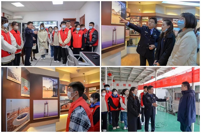 实践团队成员在郑波亭的邀请下登上水情监测船只。船只下是湍流的黄河水,在监测负责人员和老师们的陪同下,参与成员安全参观了心心念念的操作室、船舱及各种水情监测设备,近距离感受了水情监测员的工作环境。