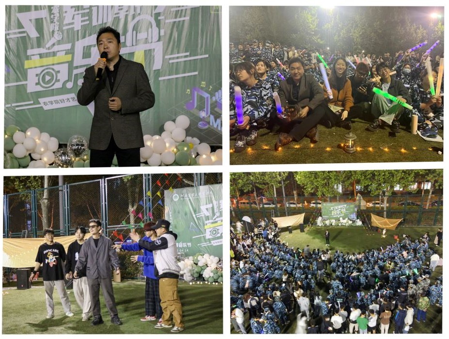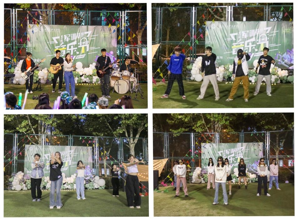 星光闪烁的夜空下,逾百名师生在草坪上席地而坐。音乐节在校电乐团的演唱中开始,一支又一支的舞蹈、一首又一首的歌谣,凉凉的微风变得柔和,激情的热血涌动全身。街舞、流行音乐、民谣等多种表演形式共20余个节目争相上演,期间,唐朝与校街舞社的成员们互动舞蹈,与2021级学生共唱歌曲,张二龙也倾情献唱,大家时而欢呼,时而轻声唱和,时而随着音乐一起舞动,挥舞的荧光棒仿佛夜空中的繁星,为夜幕下的音乐“舞台”烘托出欢乐氛围,音符也随着歌声在操场跃动。伴随着同学们的欢声笑语,“草坪音乐节”活动圆满落幕。最后,唐朝对2021级学生对音乐节的支持以及各位老师的到来表示感谢。