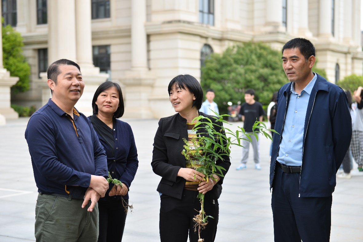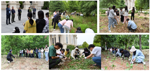 邓振营指出,劳动创造美好生活,劳动教育是大学生全面发展的必要途径,也是新时代耕读教育体系的基础,同学们一定要在劳动实践中体验农耕文化,增强劳动意识,掌握劳动技能,养成劳动习惯。李浩贤强调,两院师生要以活动为契机,加强沟通合作,形成优势互补,不断提升人才培养质量。中药材系主任李连珍结合“知行本草园”中种植的黄精、板蓝根等药材,给同学们介绍了这些药材的主要功效和日常应用,副主任李娟介绍了菊花的生物学特性和繁殖特点,并且讲解了菊苗修剪处理和移栽、施肥与灌溉等关键技术。中药材系教师文春南、魏俊杰给同学们交流了菊花种植中的细节和注意事项。外国语学院教学秘书吴玲和教学干事焦雪猛带领同学们共同完成除草、清园、划行、挖穴、移栽等农耕操作。同学们情绪高昂,密切协作,圆满完成各项耕作任务。