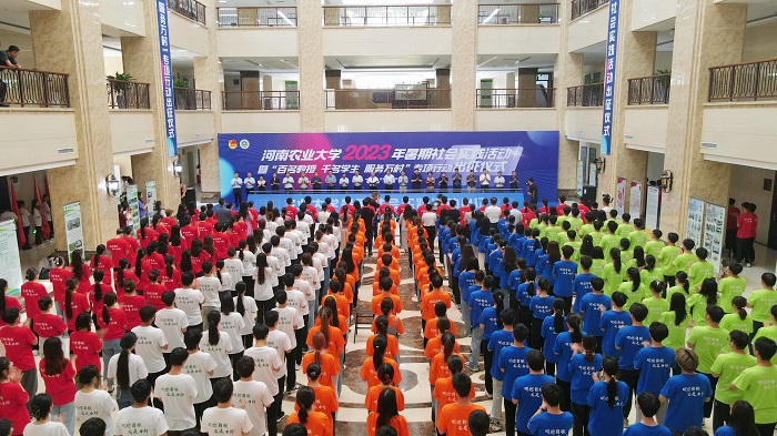 承办的学校2023年暑期社会实践活动暨“百名教授 千名学生 服务万村”专项行动出征仪式在龙子湖校区第一实验楼隆重举行。校党委副书记游舸宣布活动开幕并主持出征仪式。