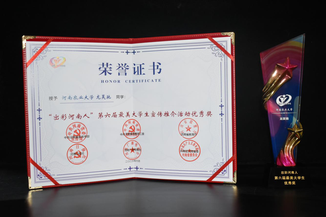 研究生龙昊驰获“最美大学生”优秀奖。