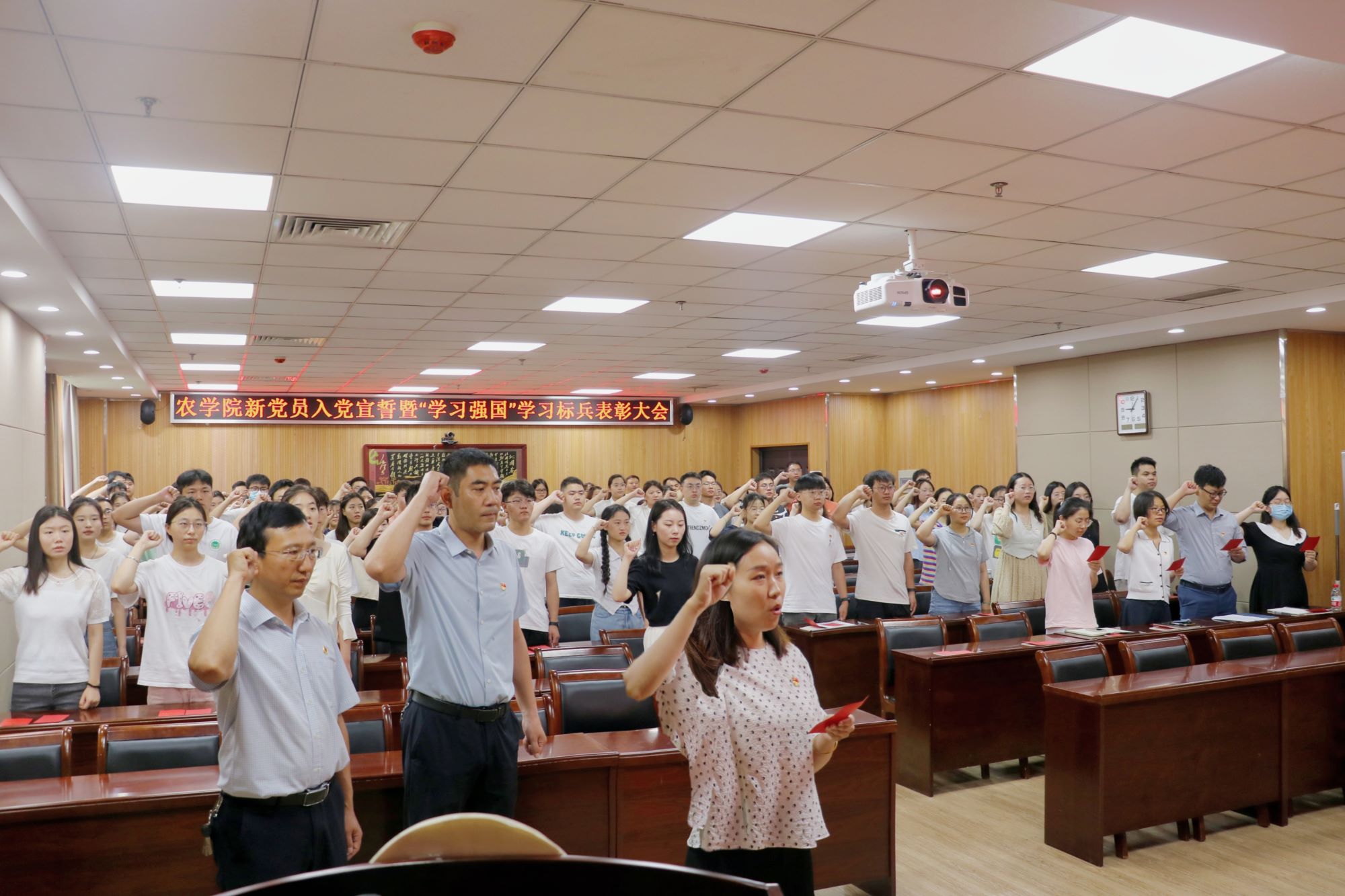 于实验楼南321会议室举办2023年新党员入党宣誓仪式。院领导班子出席本次宣誓仪式。2022—2023学年新发展党员、入党积极分子参加本次宣誓。宣誓仪式由院党委委员、副院长李浩贤主持。