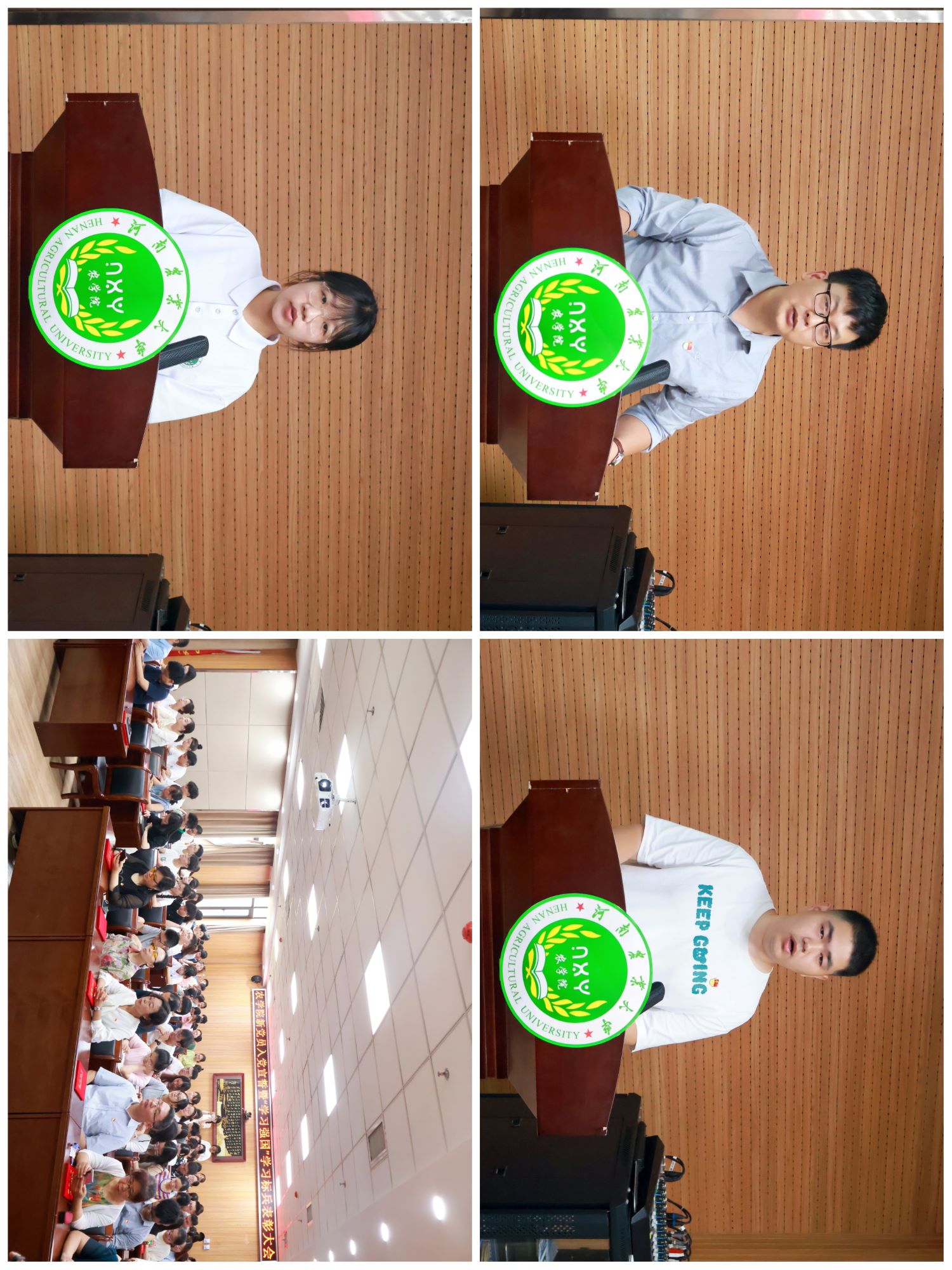 入党宣誓大会在庄严的国际歌中拉开了帷幕。副院长陈锋宣读了参加宣誓的新党员名单。随后,全体党员在学院组织员李盼的带领下面对党旗举起右拳,庄严宣誓。与会领导作为老党员为新党员代表佩戴党徽并送党章。熠熠生辉的党徽增强了新党员们的政治意识和责任意识,让他们感受到了党员的荣誉感和使命感。在发言交流环节,党员代表、2021级农艺与种业硕士研究生杨留洋分享了自己入党的感受与收获;新党员教师代表、作物生物技术系教工党支部任锐结合自身经历,讲述了自己受身边模范先锋影响从而坚定入党的成长经历;新党员学生代表、2021级农学1班牛琳娜同学表示将持续努力奋斗,争做一名合格的共产党员的决心。