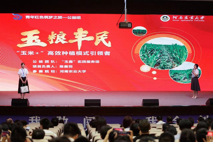 《玉粮丰民-“玉米+”高效种植模式引领者》项目在2023年第九届中国国际“互联网+”大学生创新创业大赛河南赛区选拔赛决赛中荣获青年红色筑梦之旅赛道的总冠军。项目指导老师为邵瑞鑫、刘天学、杨青华等多位教师,项目负责人为陈美羽,核心队员有胡心如、孙宜飞、杨寒星、刘贺埕、汤钰镂等多名学生。