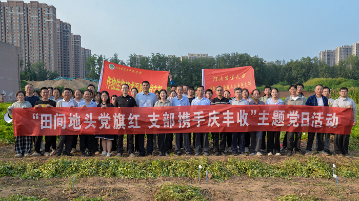 作物生物技术系教工党支部与科教园区管理办公室党支部举行了以“田间地头党旗红,支部携手庆丰收”为主题的共建活动。李浩贤、李浩川、吴永林、褚伟、贾春锐等党员领导,及殷冬梅、张幸果等花生团队师生党员代表参加了共建座谈活动。
