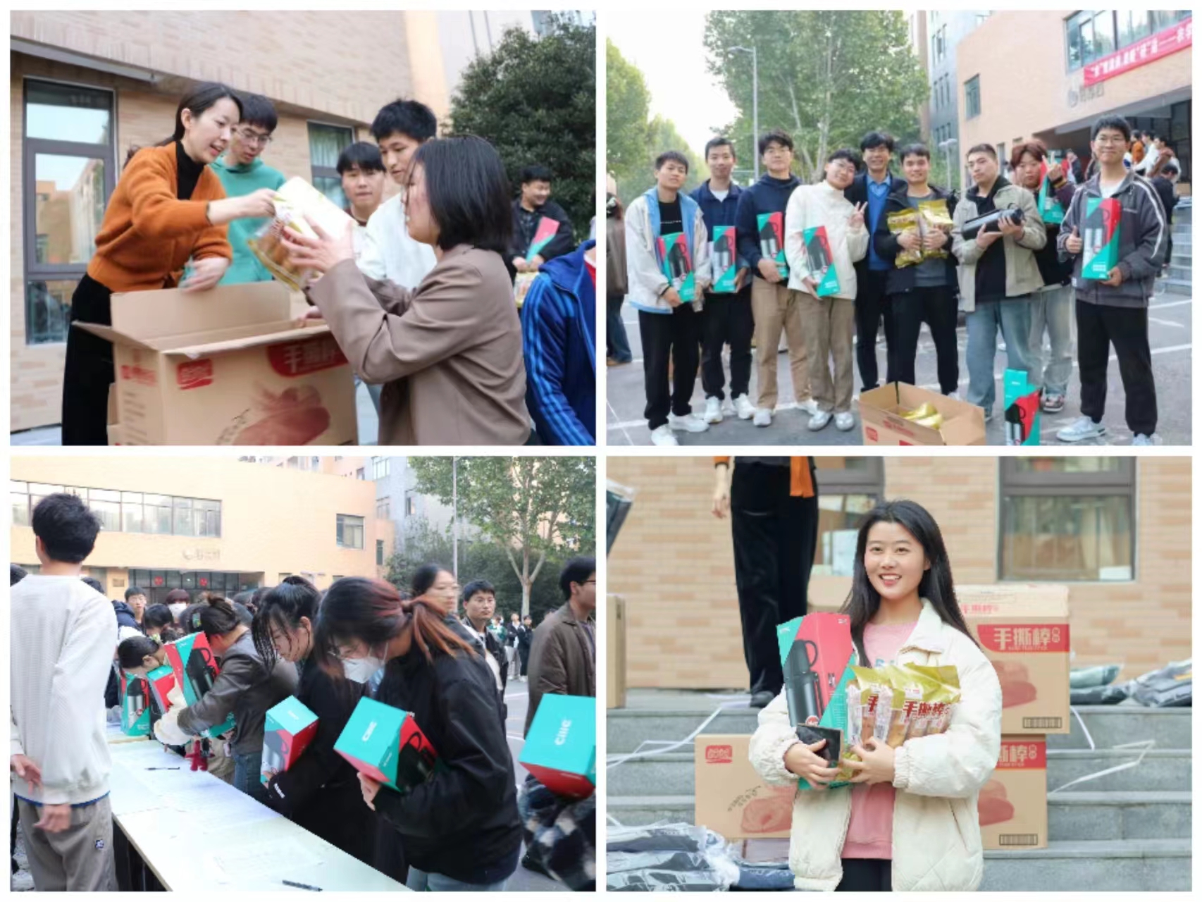 活动现场,领导老师和学生志愿者们共同搬运为考研学子精心准备的“考研大礼包”。“大礼包”为斗鱼直播