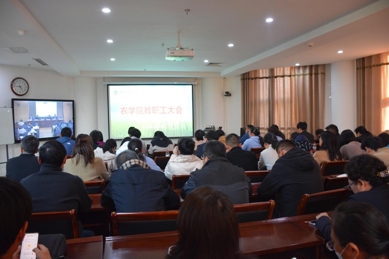 在龙子湖校区第一实验楼南321、322会议室召开全院教职工大会,总结斗鱼直播