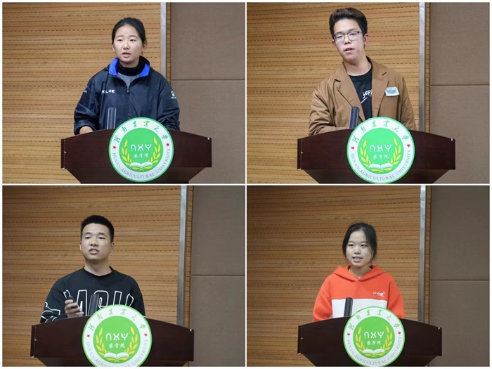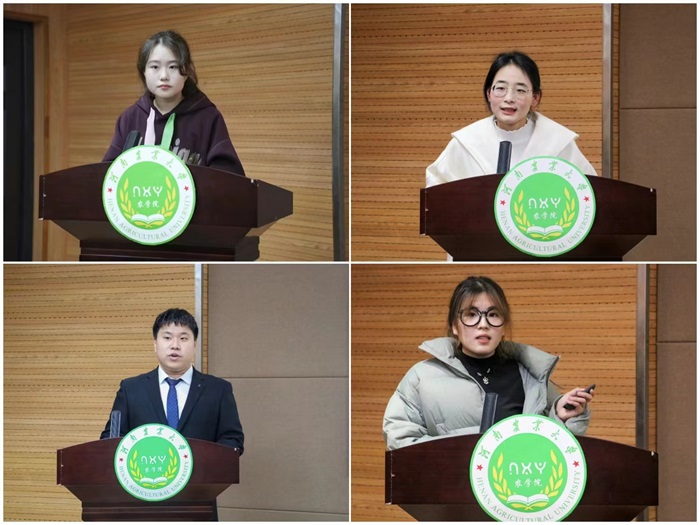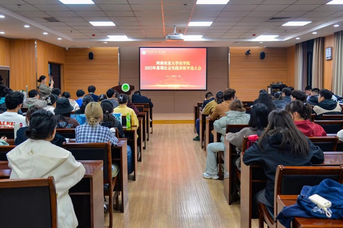 8支先进团队依次进行展示。展示环节中选手们或井井有条,胸有成竹;或语气铿锵,昂扬自信;或抑扬顿挫,逻辑清晰,讲述了各自社会实践中团队的配合,实践过程及心得体会,充分展现了各自的青春风采。现场反应热烈,在座学生纷纷为各位选手鼓掌加油。经过激烈的角逐与在场评委的打分,由张圆媛负责的“情农乡音,话助振兴”推普实践团荣获一等奖,刘贺埕负责的“禾青”实践服务团、单佳欣负责的农中作乐实践团荣获二等奖,亓泽朋负责的“豫”见同普,共筑同梦农业科普践团、熊依笑负责的下乡探知“烂场雨”,种业振兴担在肩实践团、郭芳茹负责的薪火相传—农大红旗渠精神实践团荣获三等奖。