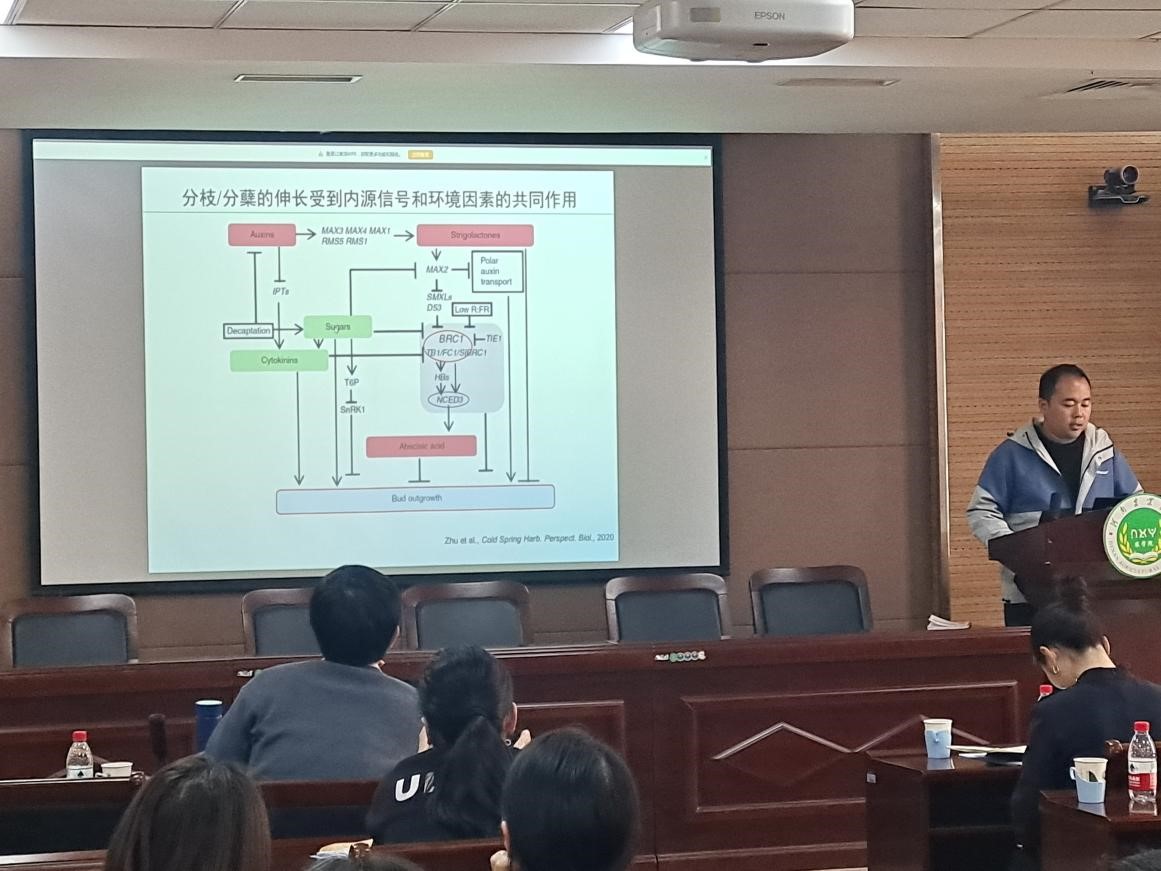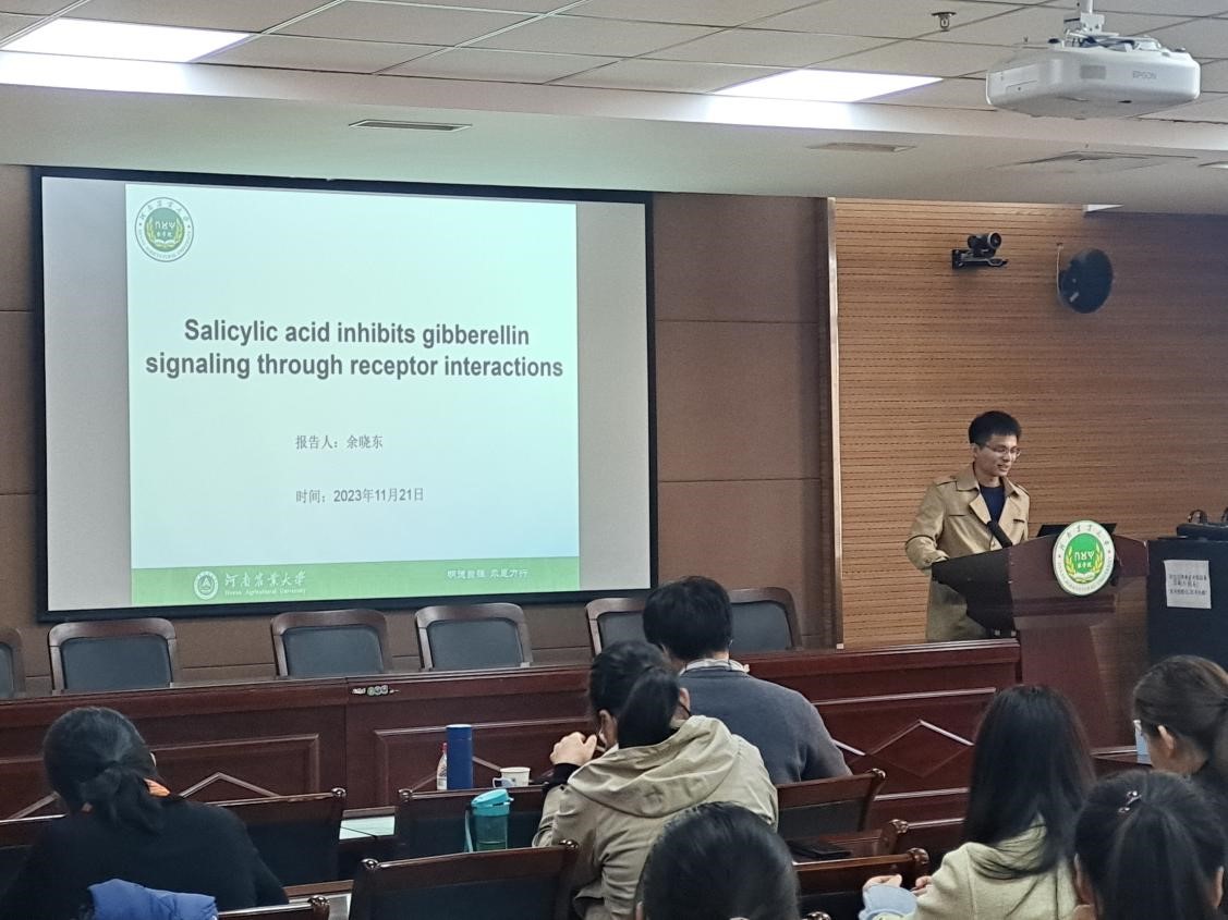 ,他以“Salicylic acid inhibits gibberellin signaling through receptor interactions”为题介绍了植物激素水杨酸(SA)通过抑制赤霉素(GA)信号通路调控植物生长和抗病平衡的新机制,同时分享了该工作背后碰到的一系列难题。