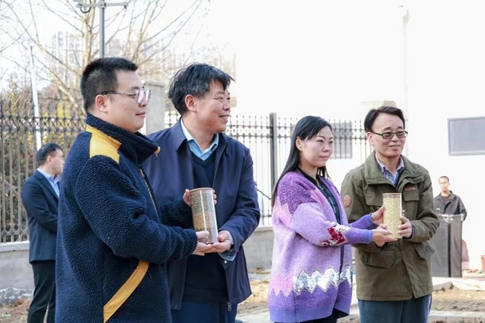 院党委书记贾磊、院长王道文为郑州市建业小学教师代表赠送由学院精心选育的彩麦和玉米种子,用“金种子”激发小学生的学农热情,引导他们知农、爱农、亲农、尚农,为加快建设农业强省贡献自己的一份力量。