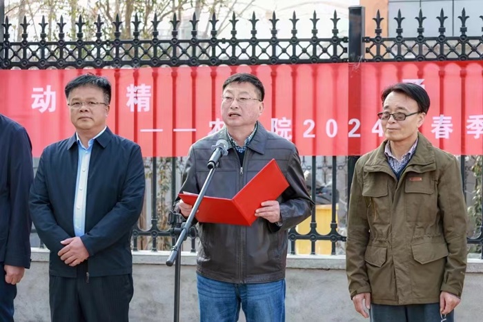 校党委副书记何松林从“惊蛰到,春耕起”谈起中华优秀传统文化中春耕的重要意义,并针对劳动教育对在场师生提出三点建议:一是希望同学们要大力弘扬劳动精神,用坚持不懈、脚踏实地构筑个人成才梦;二是希望同学们要勤学善思,厚植爱农情怀,练就兴农本领;三是希望同学们要勇于创新、勤于实践、积极探索,努力成长为“一懂两爱”现代化农业人才。他强调,要通过更多的劳动教育实践,引导大学生树立正确的劳动观念,培养良好的团队协作能力,养成吃苦耐劳、艰苦奋斗、乐于奉献的精神品质。