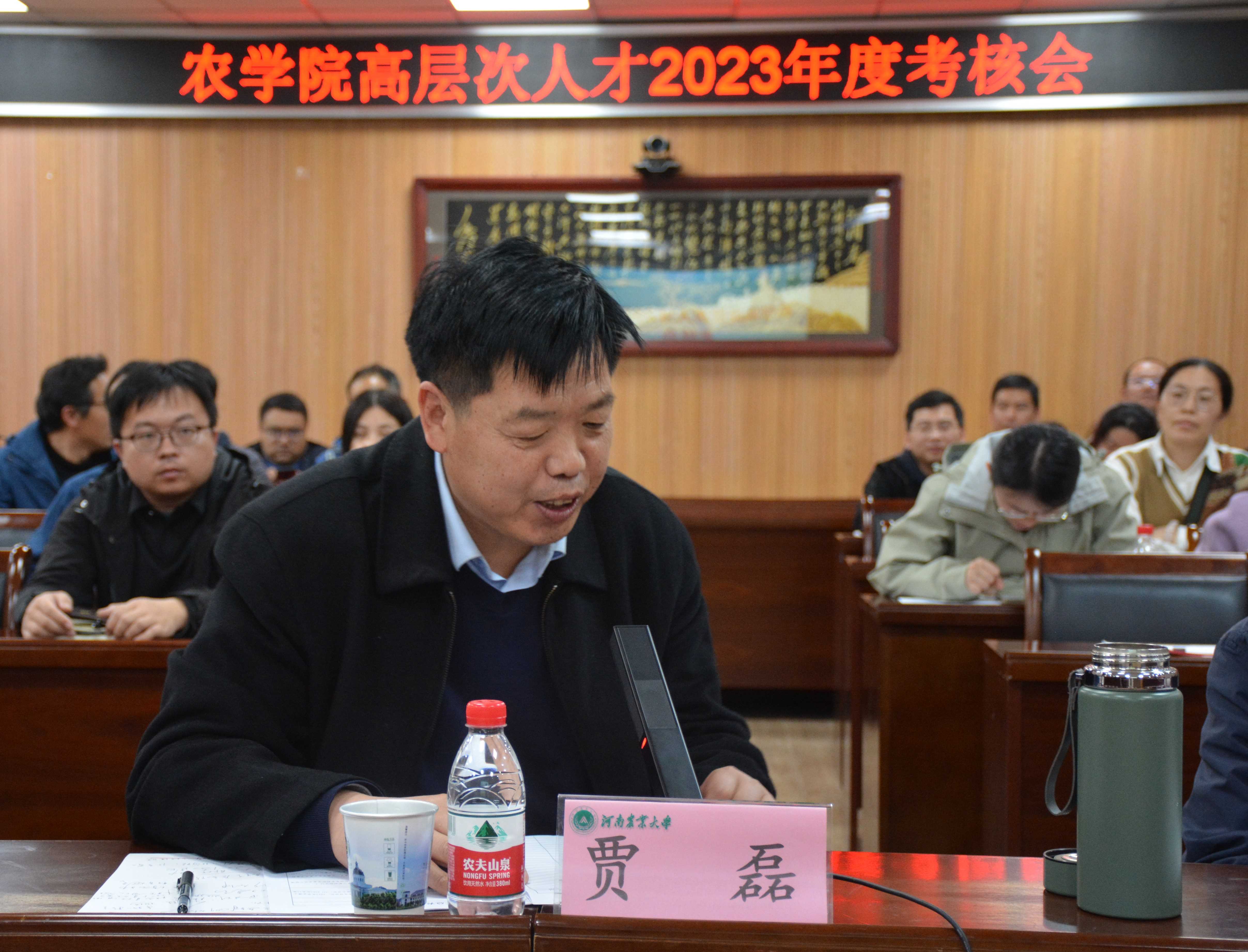 在龙子湖校区第一实验楼南321会议室召开校内高层次人才2023年度考核会议。院学术委员会成员、学院高层次人才参加会议。会议由学术副校长、院长王道文主持。
