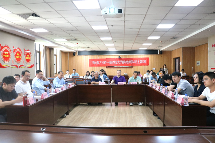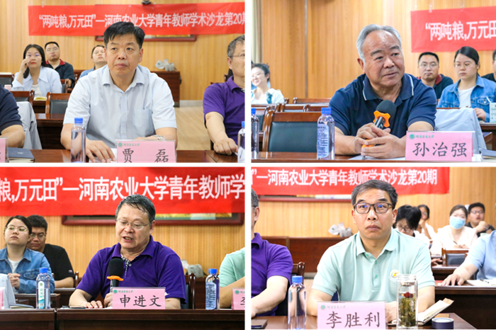 青年教师彭廷教授、董纯豪博士、董永彬副教授、李卫华教授、胡权义博士、任锐博士、梁妍博士、魏俊杰博士、杜彦修副教授,国家小麦技术创新中心(筹)青年研究员郑宏远博士,植物保护学院周海峰博士,资源与环境学院睢褔庆博士,园艺学院李阳副教授和生命科学学院文晴副教授,分别以粮饲型再生稻绿色高效种植制度创新与实践、高附加值小麦高抗性淀粉新品种培育与推广、稳产宜机收玉米新品种选育与全产业链应用、耐密高产宜机收玉米新品种选育与推广、小麦+玉米/牛至间作种植模式技术示范与推广、花生高产高效益种植模式推广示范、12C6+辐照选育牛至新品种及精油抗菌活性研究、豫产紫苏道地新品种选育与“粮-药-菇”间(轮)作生态种植模式及产业化、优质稻新品种培育与稻麦渔高效种植、高花青素富微量元素小麦新品种培育与推广、小麦重大病害发生与防控进展、小麦籽粒镉积累关键基因挖掘与功能解析、传统“麦-椒”套种模式高产高效技术路径提升与产业化应用探讨、小麦+玉米/食用菌间作种植模式技术等为题进行了汇报专题分享。点评嘉宾对青年教师专题报告进行了提问和研讨,现场气氛热烈。