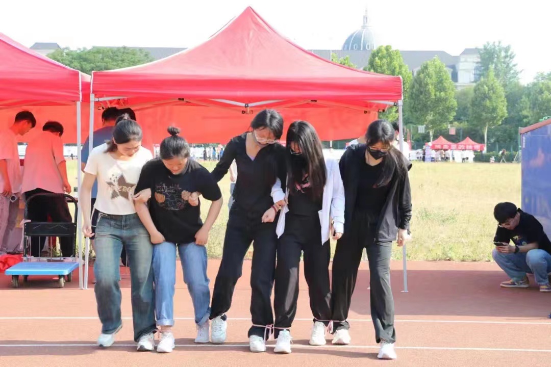 承办的“毛毛虫竞速”活动在趣味活动区开展,以其独特的趣味性和竞技性,吸引了众多学生参与。在“毛毛虫竞速”活动中,学生们三五成群,或蹲或站,围绕着它的起点,紧张而兴奋地准备着。随着裁判一声哨响,他们协调一致地摆动着身体,仿佛化身为一条条活泼的毛毛虫,在赛道上快速前进。现场气氛活跃,欢呼声此起彼伏。