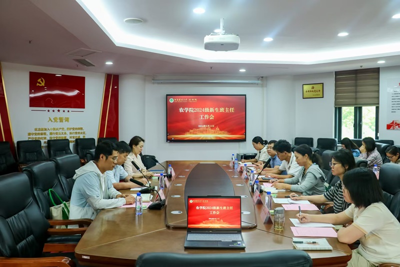 在实验楼222会议室召开新学期班主任工作会。院党委书记贾磊、院党委副书记方芳、2024级新生辅导员杨航及2024级全体新生班主任与会。