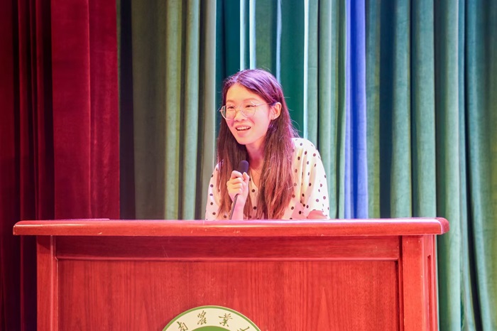 优秀校友代表2013级农学绍骙实验班毕业生,强生创新制药、华润三九医学市场部区域发展经理靳玉发言,她结合工作经验与学习经历,向在场新生提出三点建议:一是要将学科基础打牢,掌握实验基本操作;二是要学会抓住机遇,密切关注院校相关比赛项目;三是要提升学习自主性,主动与老师交流沟通、开阔眼界。