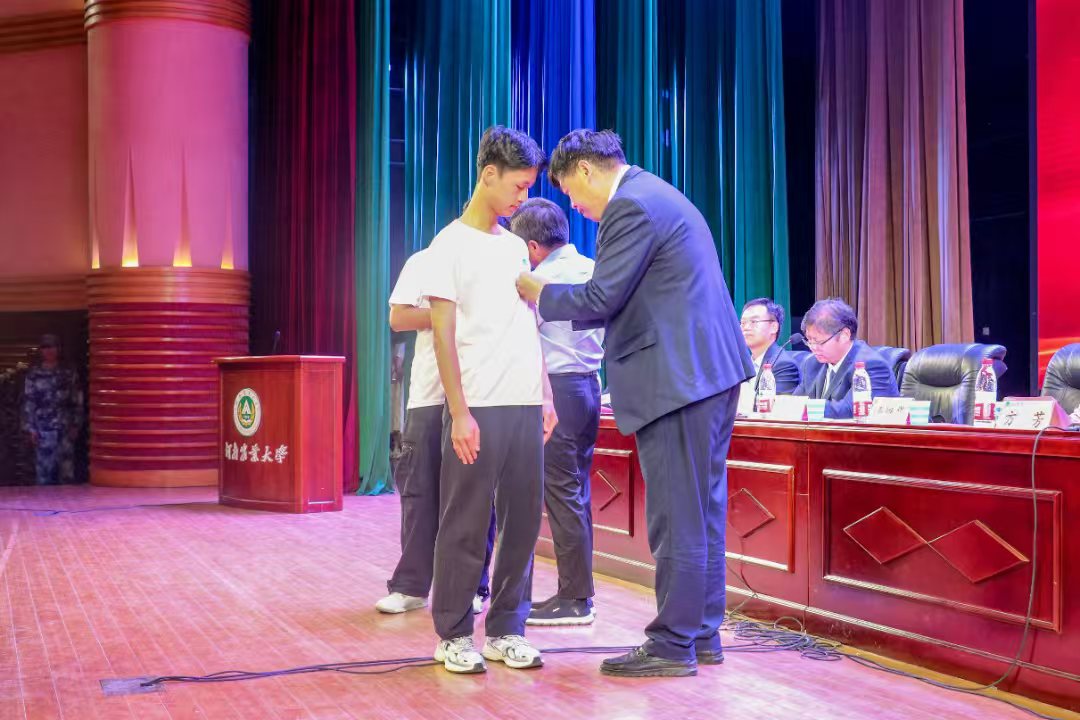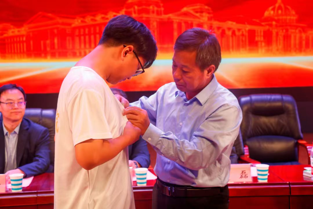 院党委书记贾磊,学术副校长、长江学者汤继华,为新生代表佩戴斗鱼直播