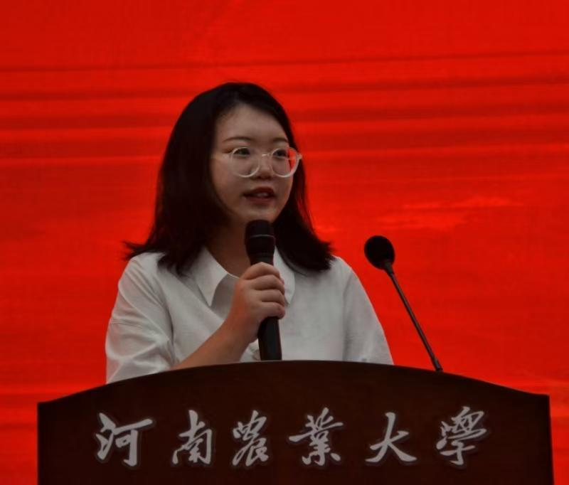 2024级研究生新生代表杨凡力同学发言。他深情回忆了在农大四年本科学习时光的成长经历和所见所悟,特别是对农学专业的认识有了更加清晰的认识和了解,他说,我喜欢农学,很幸运,我选择了农学,成为了万千农学人的一份子。作为新时代的农学人,他表示,要继承先辈的意志,肩负起农业发展的责任,为保障国家粮食安全而努力。