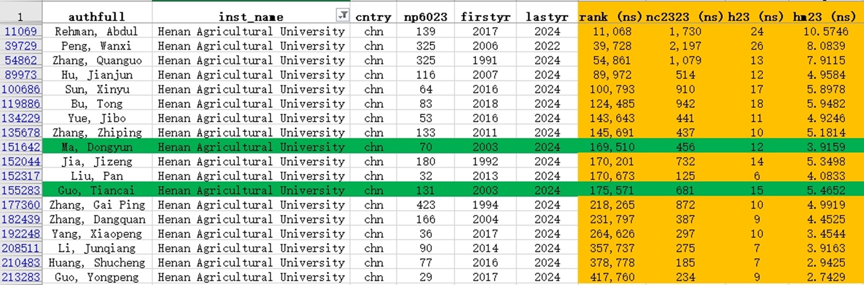 郭天财教授、马冬云研究员入选2024年全球前2%顶尖科学家“年度影响力”榜单。