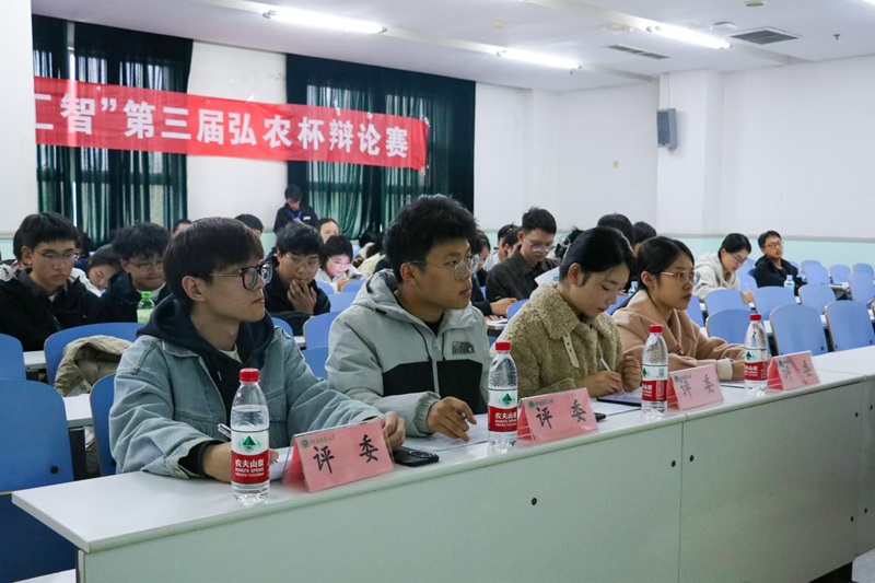 于文化路校区工程楼302举行“金语良言,融思汇智”第三届弘农杯辩论赛。本次比赛由学生会工作人员担任评委,2024级部分学生参加本次比赛。