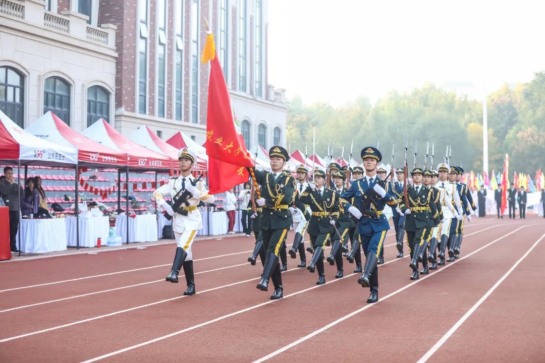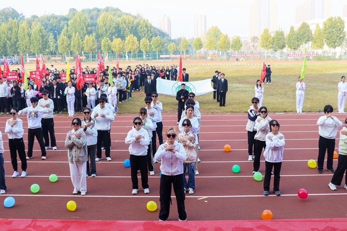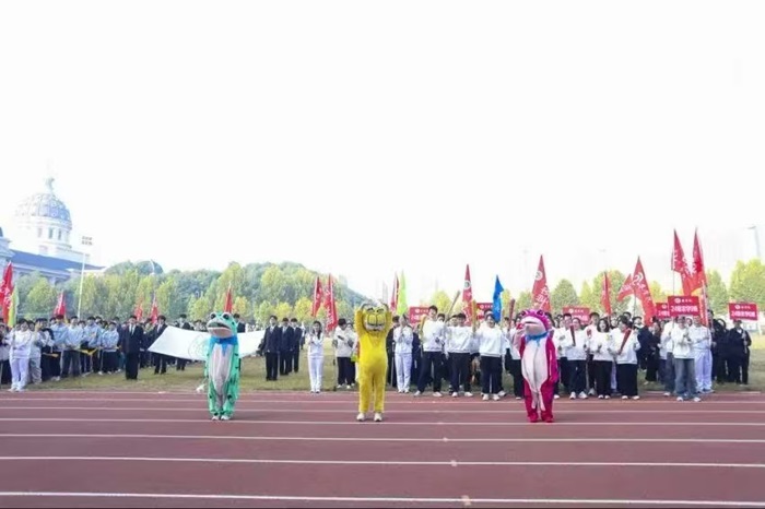 火红的跑道上,阳光温柔地洒落在赛场,一场精彩纷呈的运动盛宴在盛大的开幕式中缓缓拉开帷幕。国旗队、彩旗队方阵队列整齐划一,步伐铿锵有力;2023级、2024级本科生方阵青春飞扬,活力四射;研究生方阵热情似火,青春昂扬;教职工方阵精神抖擞,步履生风,依次经过主席台接受检阅。文艺表演《我爱你中国》优雅灵动,引爆全场。国旗在全体师生的目光中缓缓升起,中华传统文化的舞狮表演气宇轩昂,阳刚劲美,学生情绪高涨、斗志昂扬。