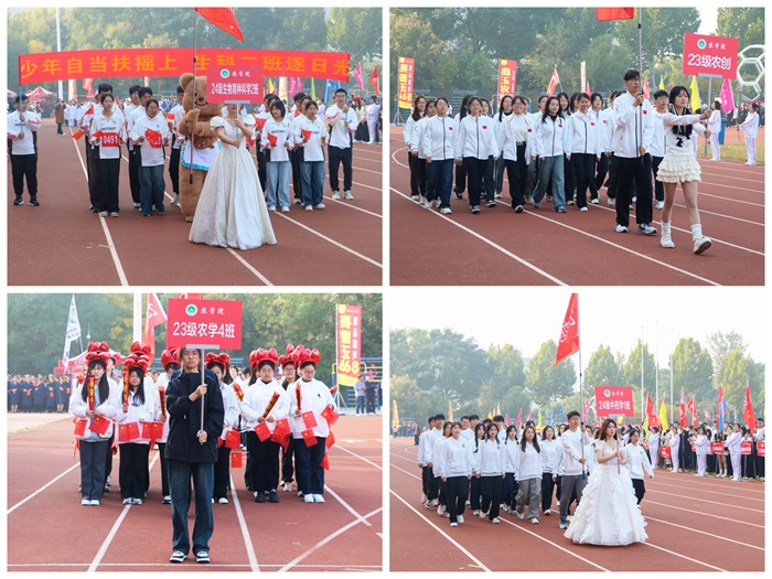 本次运动会共设立接力赛、铅球、跳远等24个运动项目。骄阳下飞驰,欢呼中奋进,清冷的风吹不散运动员钢铁般的意志。彩旗猎猎,舞龙跃虎,运动员披荆斩棘,或迅疾如风,或矫健如龙,在无畏的勇气、执着的追求、永恒的坚守下,他们必定拥抱荣耀与辉煌。历经一天紧张激烈的赛程,研究生团队,农学2024级八班,农学2024级九班分别荣获团体总分一等奖、二等奖、三等奖。多人获得单项奖并站上领奖台,院领导班子成员及团委老师为学生颁奖。