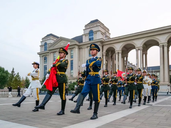 仪式开始,在嘹亮的国歌中,全体师生肃立,注视着五星红旗冉冉升起。国旗下,学生代表向全体学生发出学风建设、基础文明创建倡议书,鼓励学生培养严谨学风,于实践活动中“勇担当、敢创新”,真正做到“知行合一”共同营造优良环境,并提出弘扬文明、安全出明、爱我宿舍的三点倡议,希望学生们真正践行“文明起源于内心,体现于行为”,同心协力,共创文明新景。