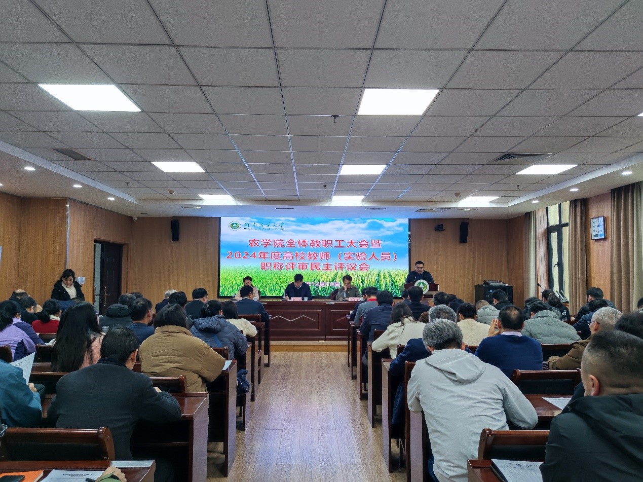 在第一实验楼南321会议室,召开全体教职工大会暨2024年度高校教师(实验人员)职称评审民主评议会。院领导班子成员、学院全体教职工参加会议。会议由院党委副书记方芳主持。