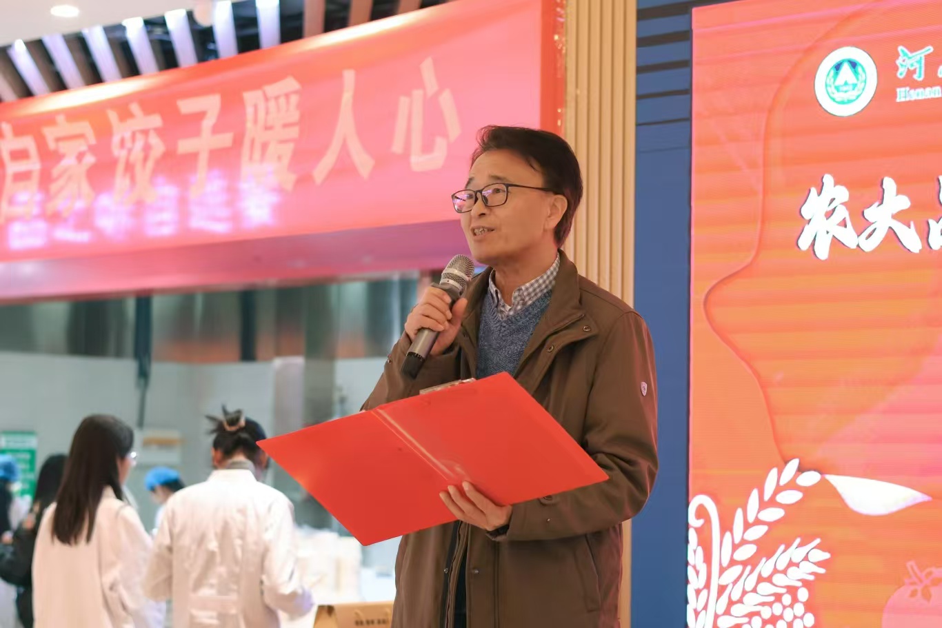于龙子湖校区西苑餐厅举办“农大品种飨盛宴 自家饺子暖人心”迎冬至,包饺子活动。校党委副书记、工会主席何松林,副校长杨喜田、刘晓永、赵鹏,学术副校长王道文、汤继华出席活动。学校相关部门负责人和师生代表参加活动。活动由园艺学院党委书记秦素玲主持。