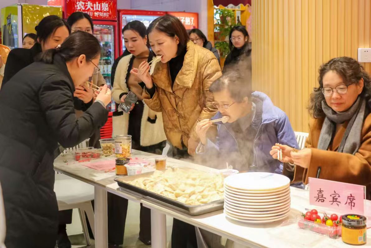 师生共同品尝饺子