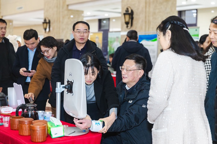 多年来孕育的“金种子”悉数亮相。茅台专用酿酒小麦品种豫农901、豫农910,抗赤霉病小麦新品种豫农912,以及高产稳产、优质抗病的玉米新品种豫单1881、豫单303等新品种,吸引了众多师生和企业代表咨询了解。紫苏、黄精、山药、地黄、丹参等学院研发的17个中药材新品种在品质、产量、抗逆性等方面优势明显。由“方欣1号”“豫稻24”水稻新品种制作的米饭、米粥色泽油亮,口感香浓,同学们尝试后纷纷表示“太好吃了、现场卖不卖啊?”“不配菜我都能吃一碗”。富含花青素的黑种皮花生品种“农大黑7572”香脆可口,白皮甜花生“农大白7626”又甜又香、爆裂玉米制作的“农大爆米花”膨爆特性、口感等性状指标上均达到了国内领先水平。被同学们夸赞为“赛博中医”“电子诊脉”的AI中医体质监测现场,李连珍教授表示,中医发展与时俱进,AI设备借助面诊、舌诊、脉诊等科学分析,可以实时为现场同学给出中医诊断及健康建议。
