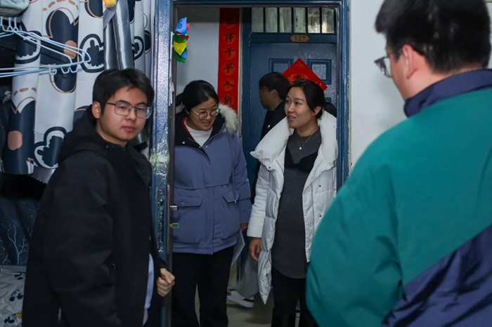此次走访涵盖了多个年级的学生宿舍,专兼职辅导员和团委老师们先后去了桂花园、牡丹园、菊潭园和紫竹园等宿舍楼。老师们不仅关心学生的学业和生活,还对宿舍卫生、设施安全等方面进行了细致检查,提醒学生要注意用电安全、保持宿舍整洁,共同维护良好的居住环境。