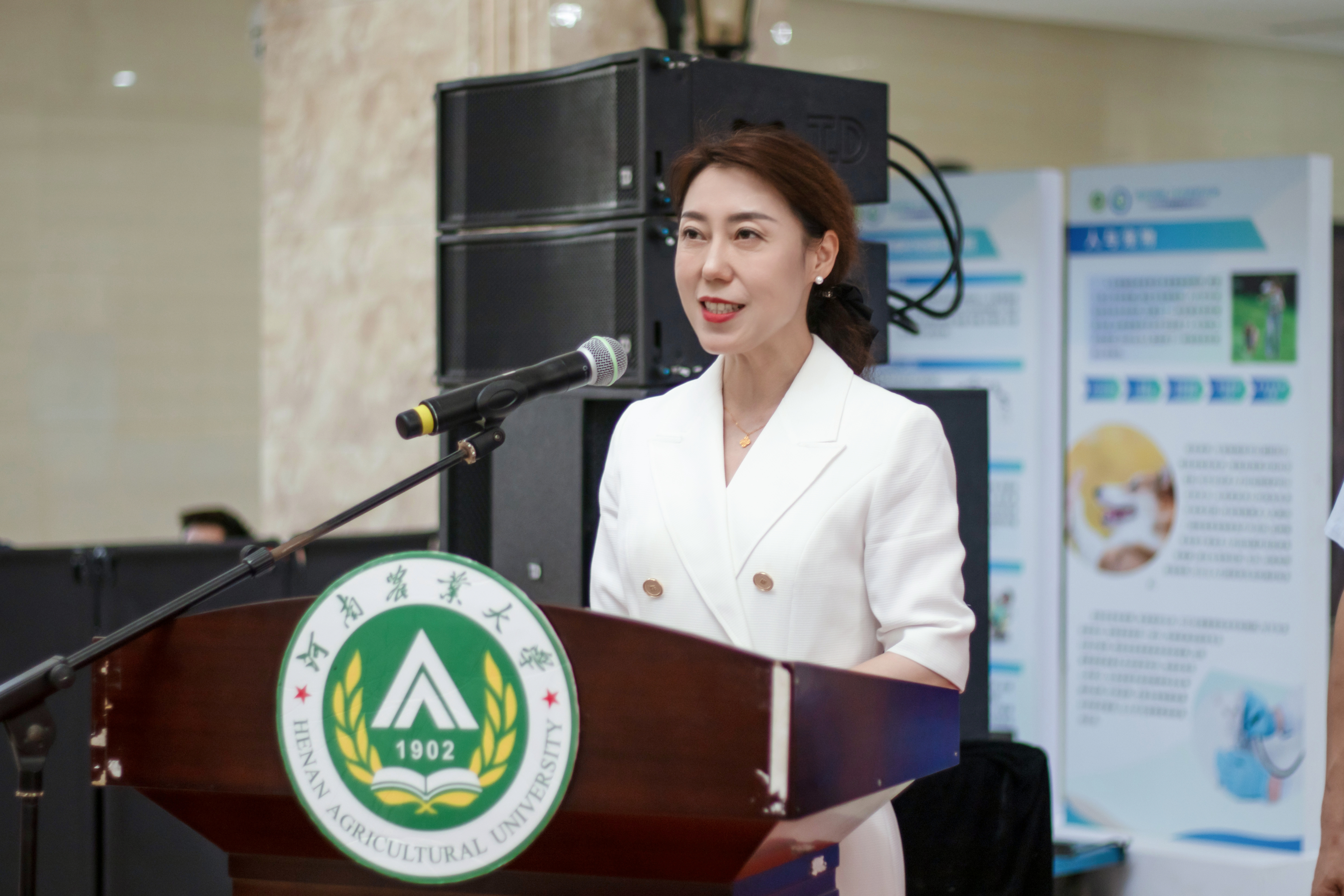 河南省现代种业有限公司董事长王丽红作为企业代表发言。她回顾了校企双方长期交流合作的丰硕成果,对学校毕业生质量给予高度评价,并鼓励学子认清农业、种业及粮食安全战略意义,为民族种业振兴和国家农业高质量发展贡献力量 ,希望通过此次双选会引进更多具有开拓创新精神的优秀学子,广聚天下贤才、共谋中原崛起。