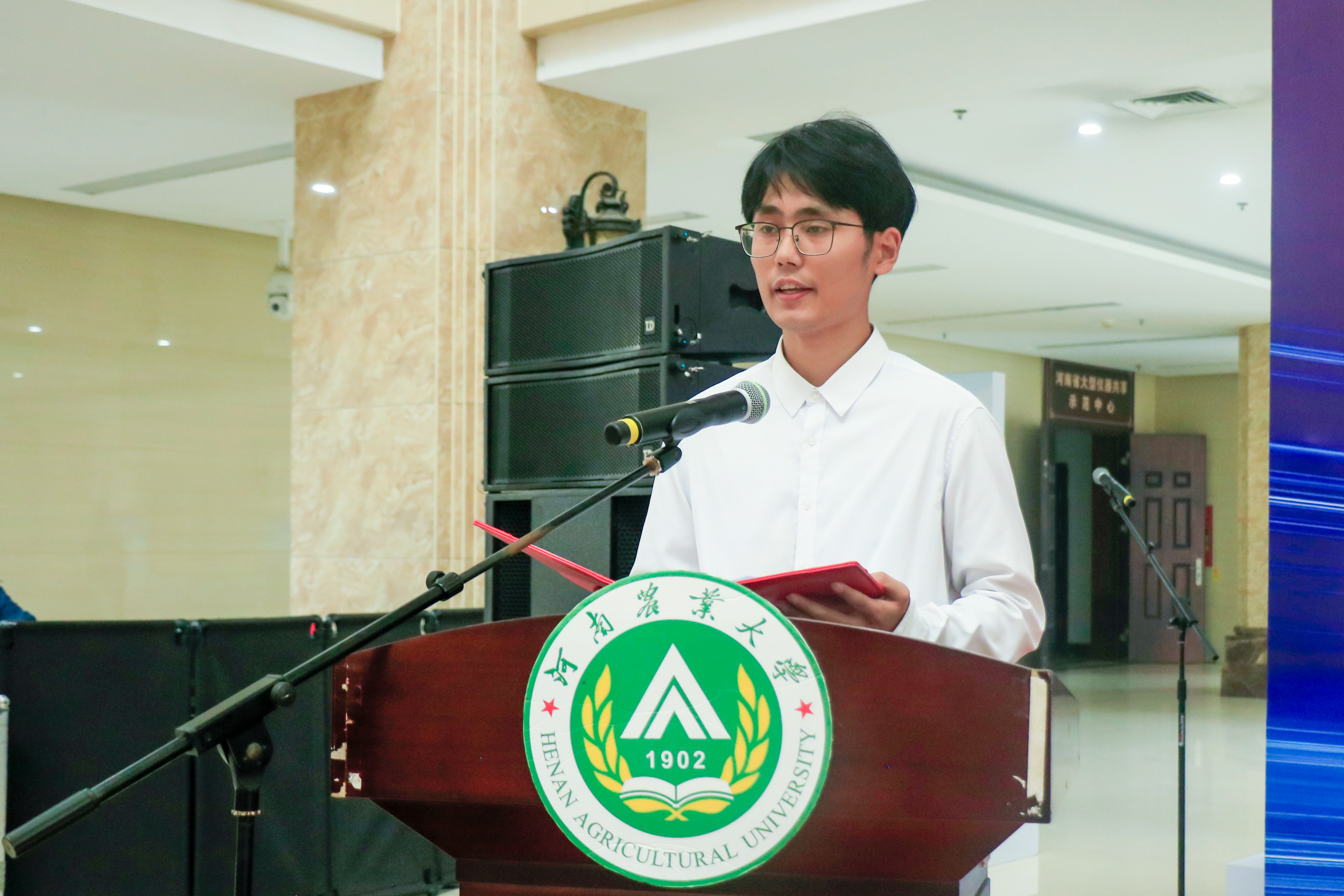2025届毕业生王立得作为就业代表发言。他分享了校园招聘会、学院就业交流群成功求职的经历,倡导“先就业再择业”理念,鼓励同学善用学院就业平台把握机会,并呼吁毕业生投身“三农”建设,奔赴美好未来。
