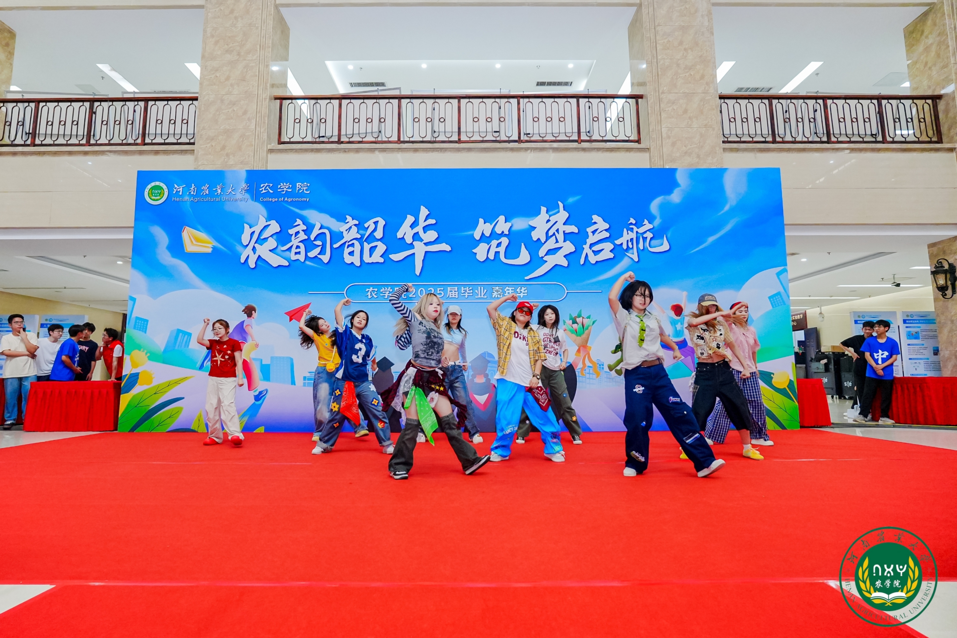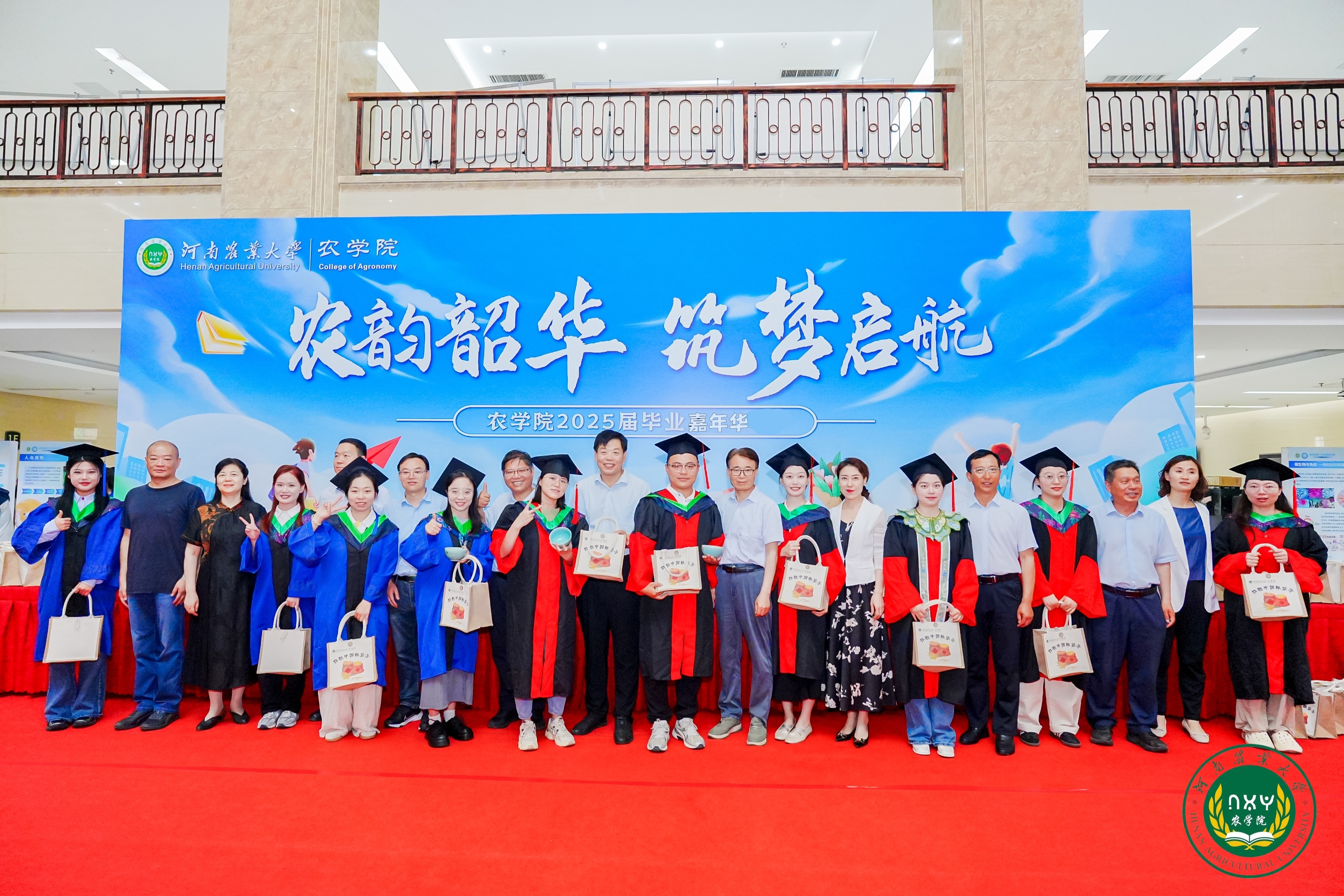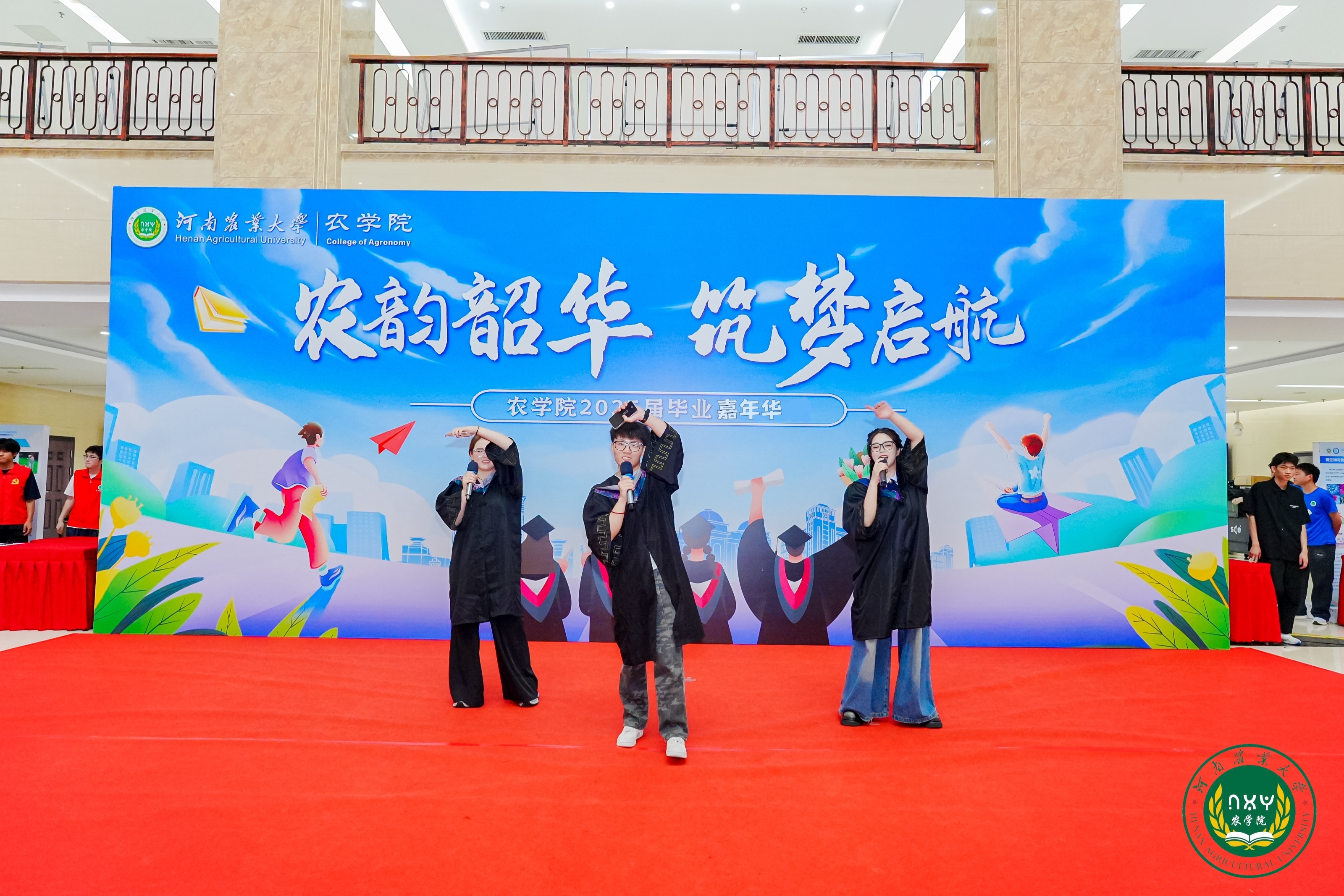 本次毕业嘉年华充分融入农大特色与农学元素。街舞燃情、歌声动人,多元艺术表演热力开场,点燃了现场热烈的气氛,一首首青春歌曲诉说同窗深厚情谊。学院领导老师们为毕业生逐一送上极具农学特色毕业礼物:金灿灿的“粮袋子”和精美的青花瓷、钧瓷“农大碗”。这些礼物不仅寓意着学院对毕业生幸福、平安的祝福,也彰显着“抗稳中国粮袋子”“把中国人的饭碗牢牢端在自己手中”的农学人使命担当,希望毕业生们如这瓷器般历经淬炼而坚韧,如稻穗般扎根大地而饱满,带着农院人顶天立地的风貌,在乡村振兴、农业现代化的征程中盛放光彩。
