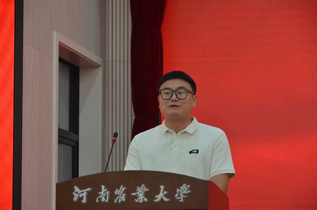 的成长历程,表达了对于农业科研的深厚情怀与坚定信念。他强调,选择读博并非为了更好的工作,而是源于一份“把论文写在大地上”的使命担当,致力于以科技创新服务农业、造福农民。他呼吁新生们传承农学人脚踏实地、艰苦奋斗的精神,牢记“明德自强、求是力行”的校训,深入田间与实验室,勇担强农兴农责任,将个人理想融入乡村振兴和农业强国建设的伟大事业中,在农大这片沃土上扎根生长、贡献力量。