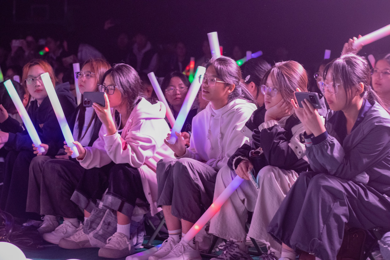 活动最后,团委老师及班主任代表与2025级新生齐声合唱。悠扬而充满希望的旋律回荡在现场,将整场活动的气氛推向最高潮,展现了斗鱼直播