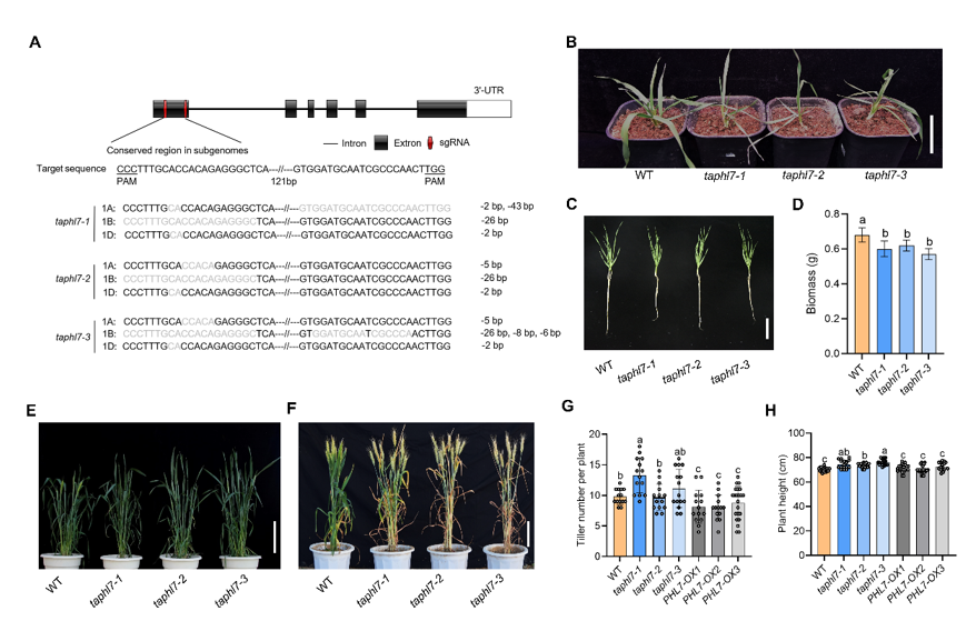 TaPHL7功能缺失提高了单株产量、穗粒数和千粒重。这些结果表明,在自然栽培条件下,