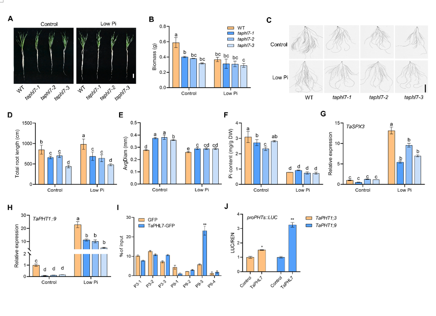 图3:TaPHL7 正向调控 Pi 信号传导和 Pi 吸收