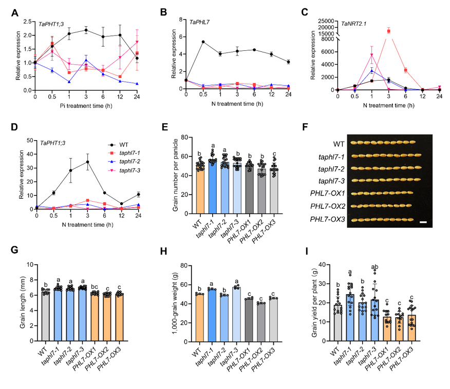 图5:TaPHL7调控的氮磷利用调节籽粒产量