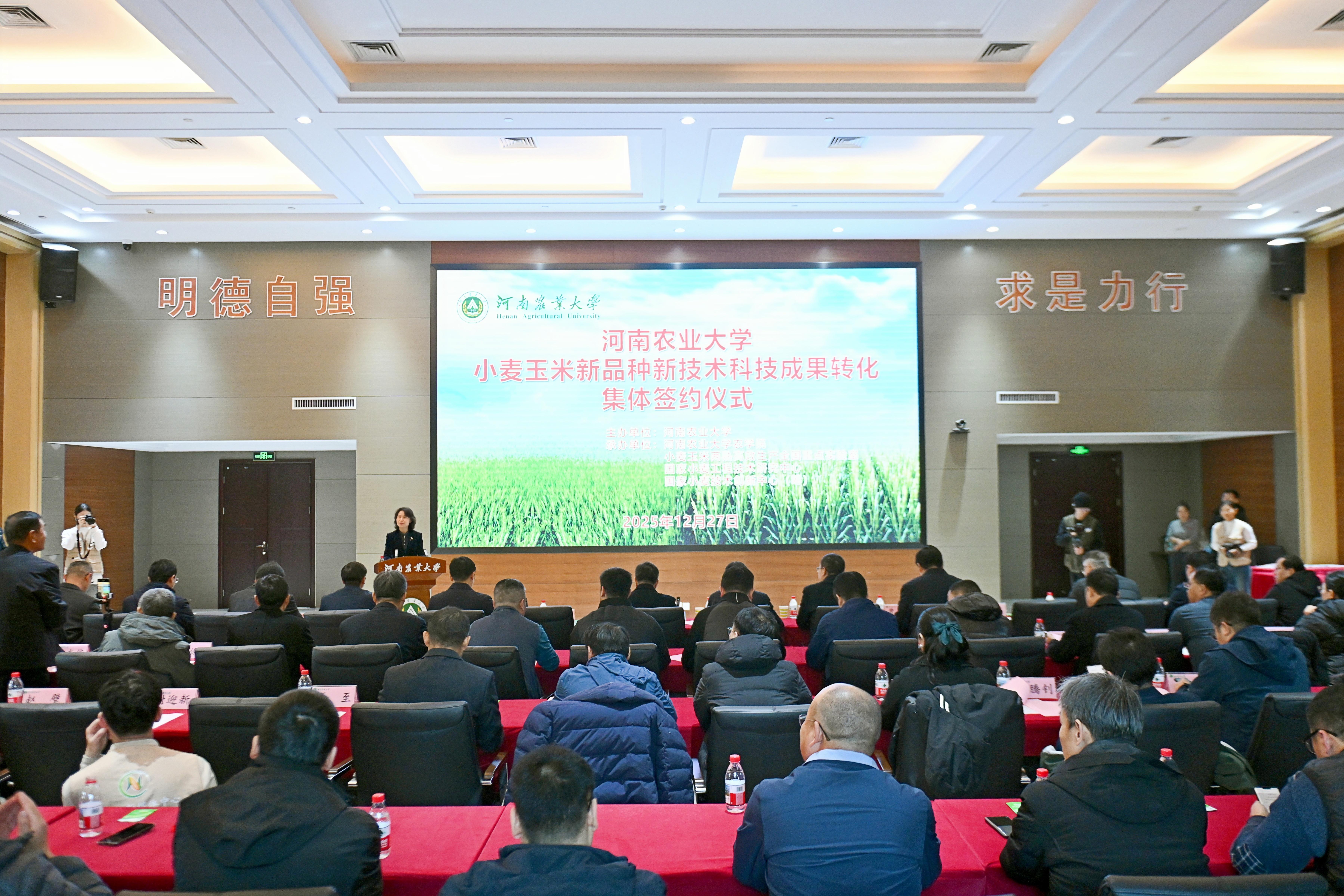 与江苏省大华种业集团有限公司、大北农集团河南金色丰华种业科技有限公司、河南赛德种业有限公司、新乡市农业科学院、河北润嘉种业有限公司等17家科研院所及种业企业集中签约,内容涵盖小麦、玉米、水稻等多个作物新品种与关键技术。此次签约标志着校地、校企合作迈向新阶段。