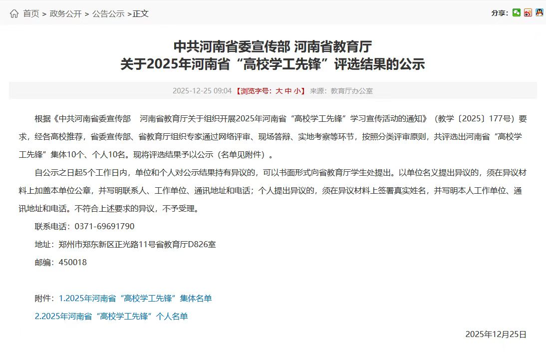 凭借党建引领示范强、学生培养质量高、社会关注影响大等鲜明特色,从全省高校院系中脱颖而出,成功获评河南省“高校学工先锋”集体荣誉称号。