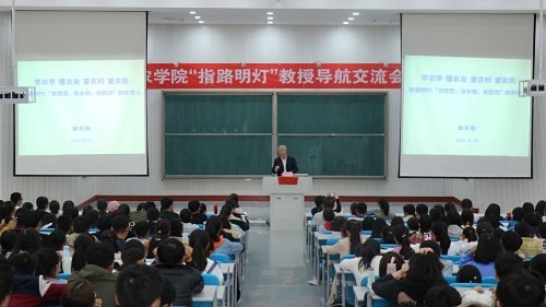 在龙子湖校区教学楼大教室二召开“指路明灯”教授导航交流会。本次交流会的主讲人是由小麦专家郭天财教授。交流会由学院党委副书记吴旭静主持,辅导员李盼和学院2018级新生与会。